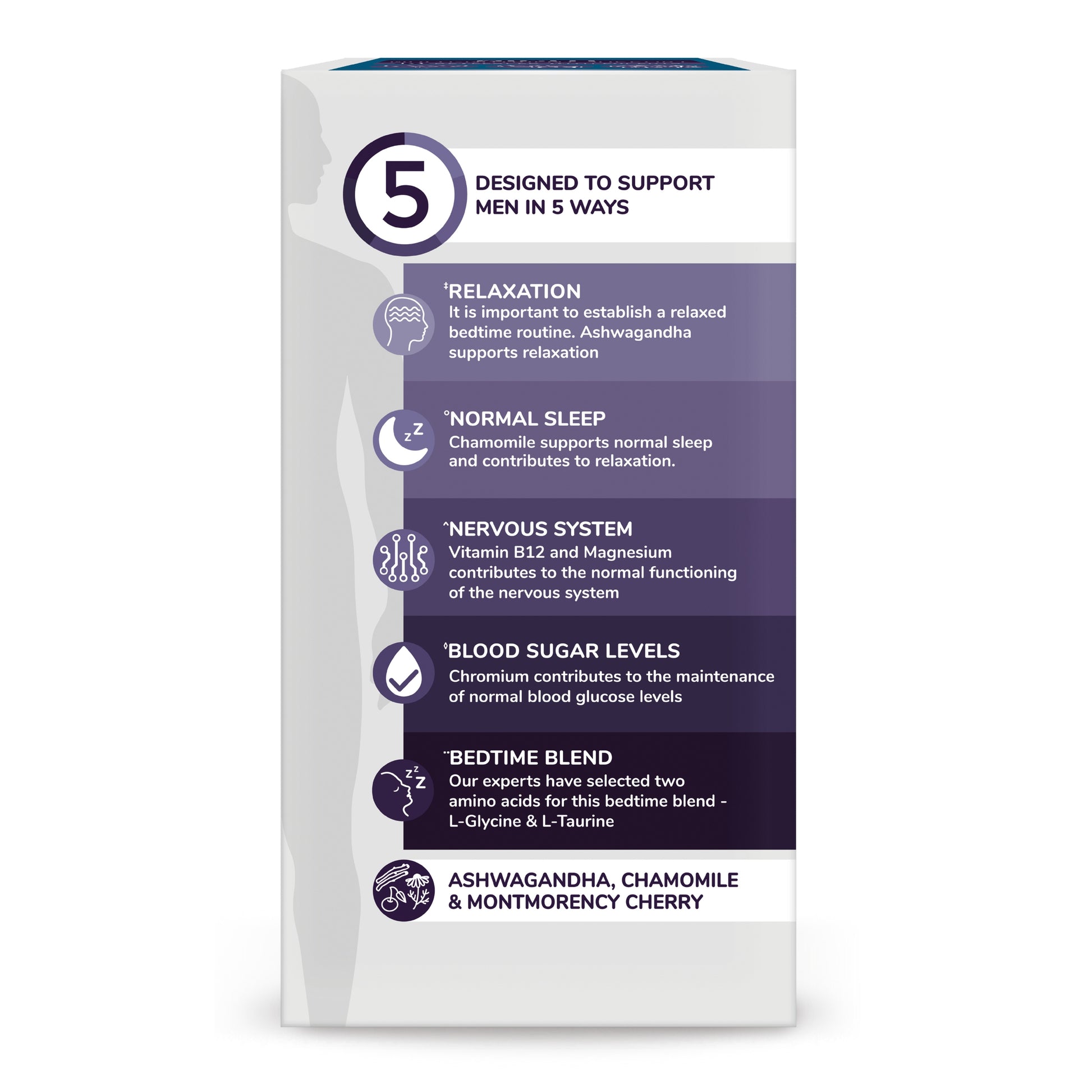 Health & Him NIGHT Multi-Nutrient Support contains a blend of vitamins, minerals and active botanicals and is designed to support your sleep routine. Health & Him NIGHT is suitable for all men 18 years+.