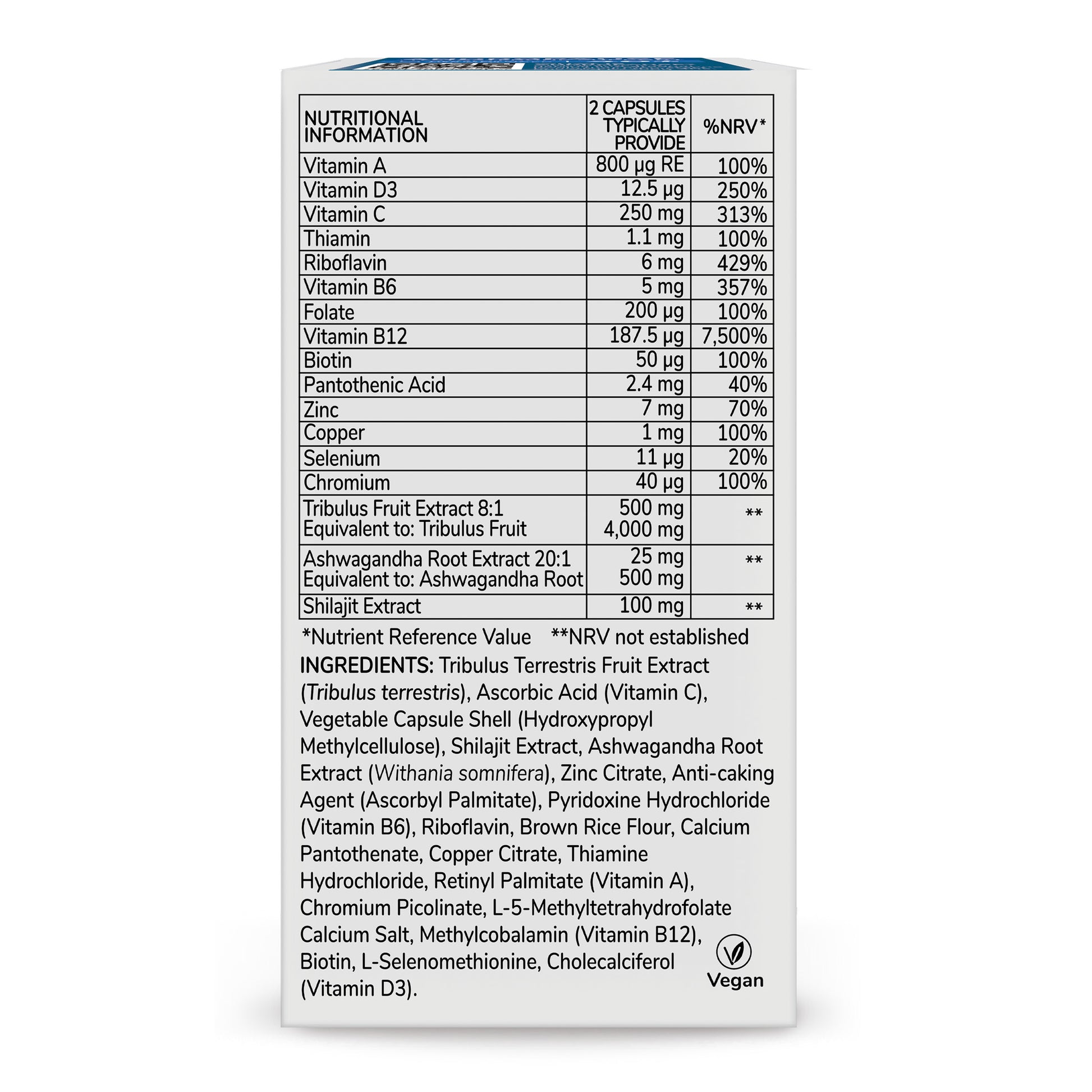 | Vitamin B12 | 187.5 μg | 7500% |