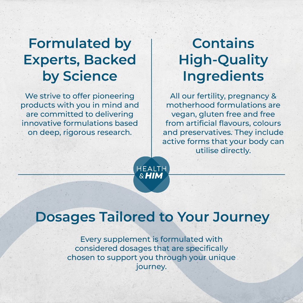 Our science-backed formulations are carefully developed with experts to provide optimal support throughout your paternal journey. Health & Him For Dad Paternal Support has been expertly developed to support men's daily wellbeing after the birth of their child.