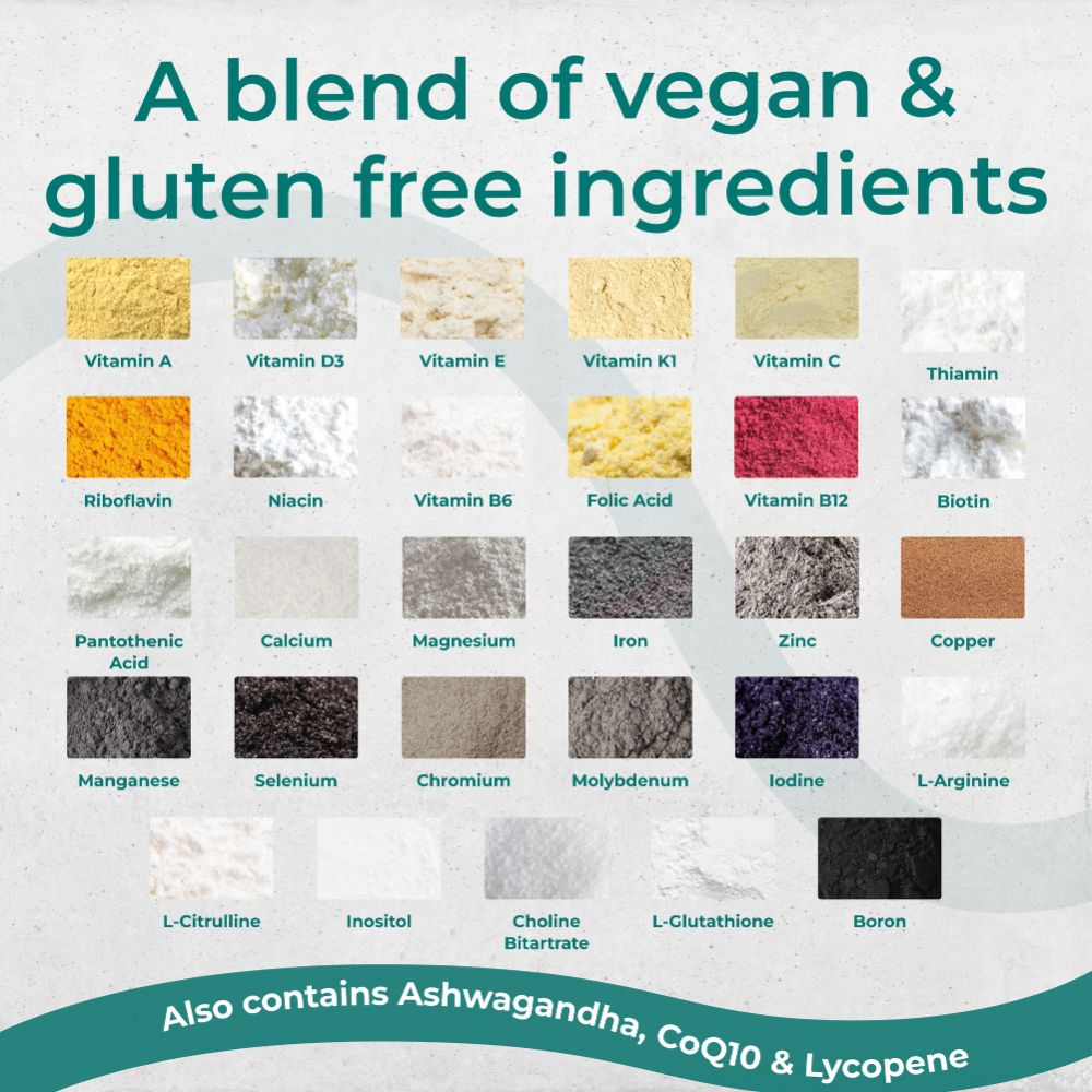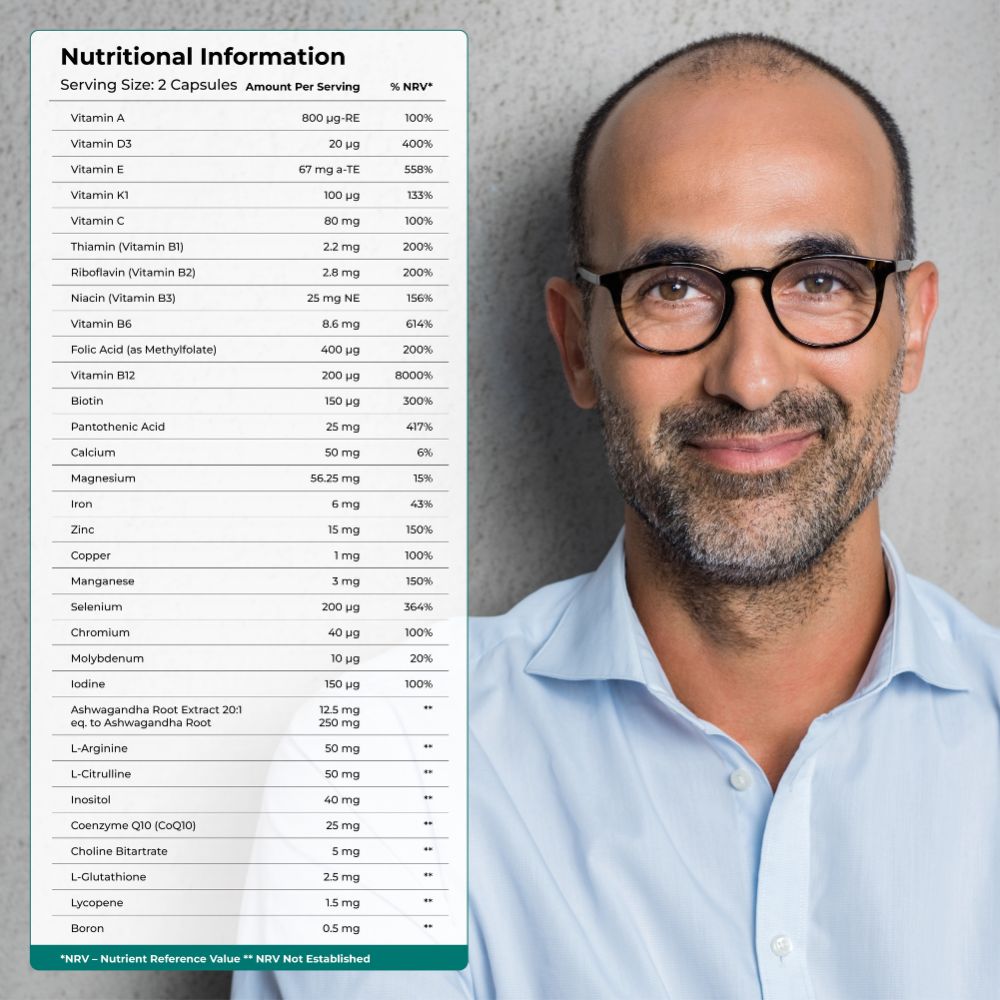 CONTAINS ASHWAGANDHA, COQ10, LYCOPENE, SELENIUM AND ZINC.