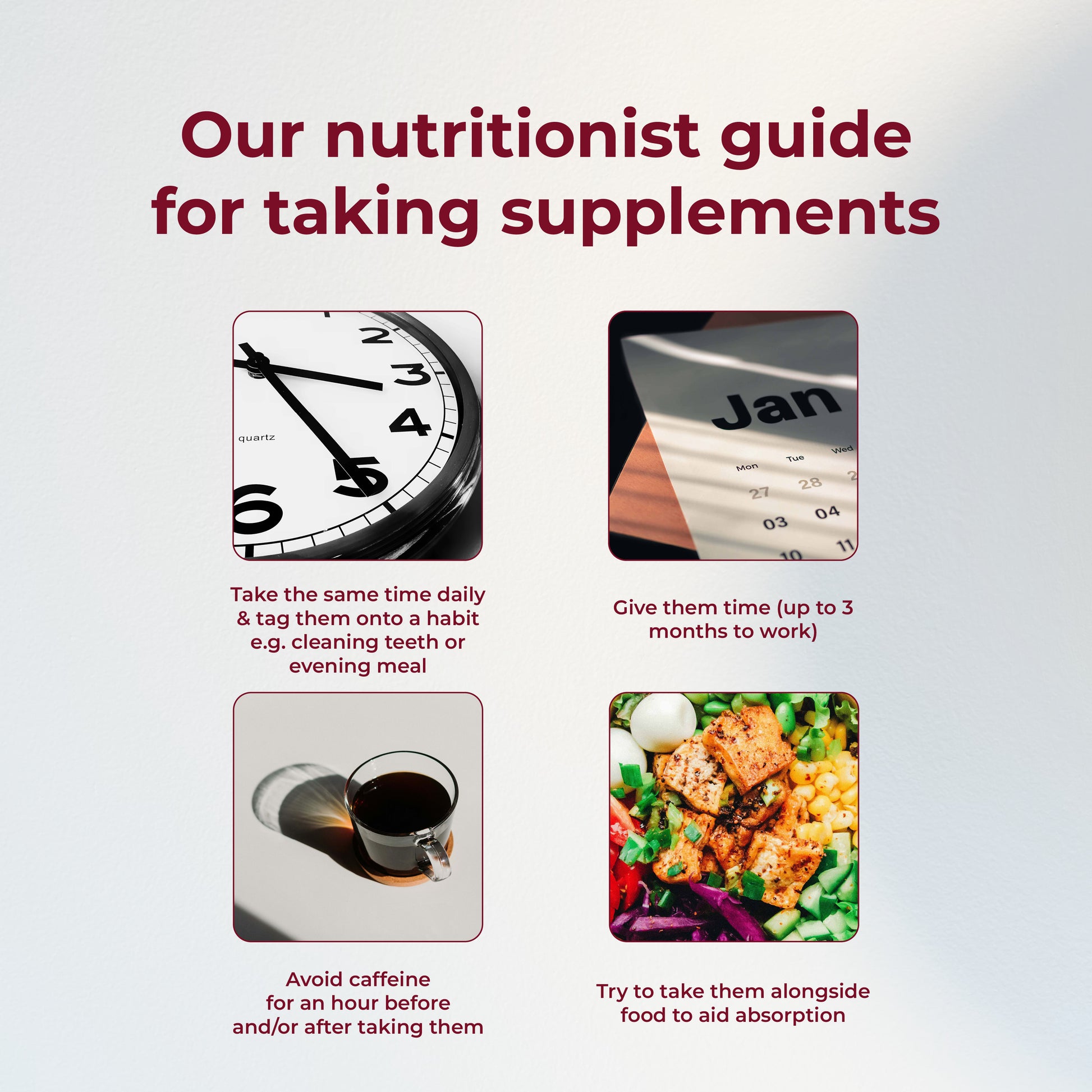 We suggest you take this supplement every day. Whilst some nutrients are absorbed and can take effect quickly, others, particularly botanicals, will have an accumulative effect over time.