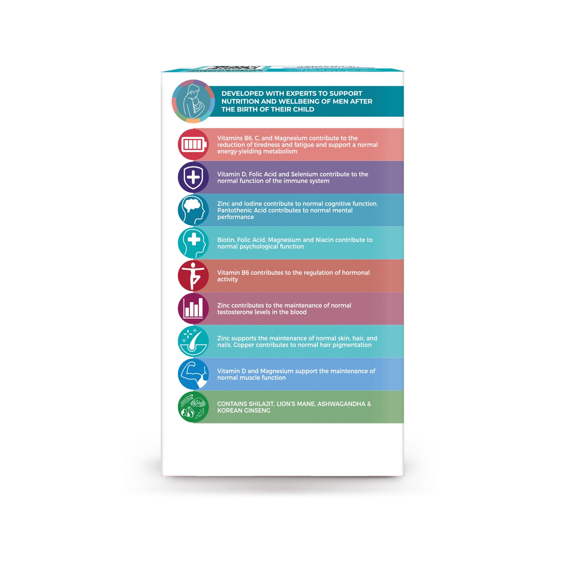 Our science-backed formulations are carefully developed with experts to provide optimal support throughout your paternal journey. Health & Him For Dad Paternal Support has been expertly developed to support men's daily wellbeing after the birth of their child.