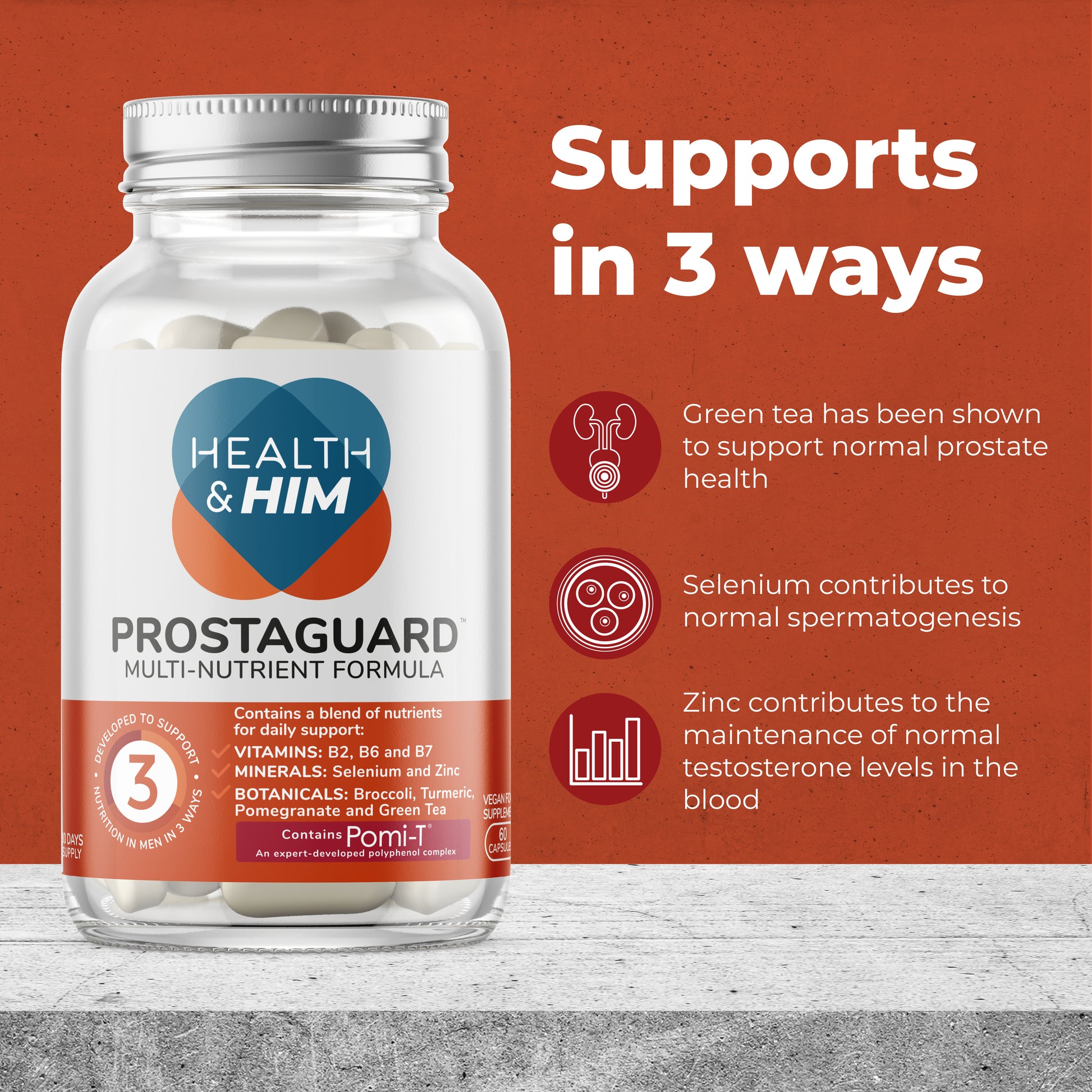 Health & Him ProstaGuard ™ Multi-Nutrient Formula is developed to support men in 3 ways: